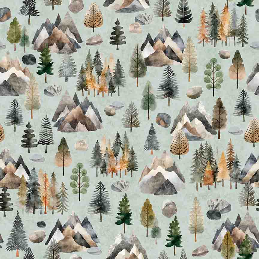 Bigfoot Sage Pine Trees by Morris Creative Group for QT Fabrics