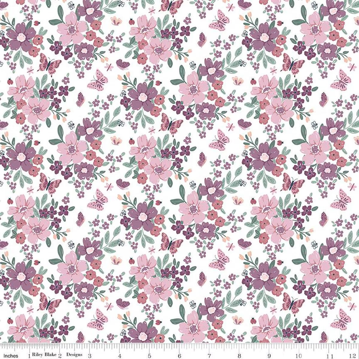 Buds & Butterflies Main White by Cayla Naylor For Riley Blake