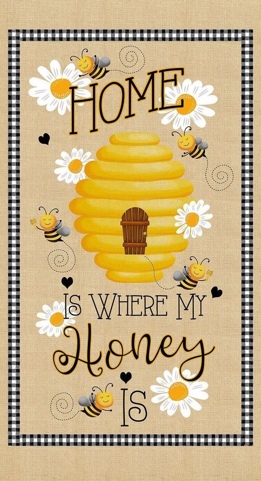 Home Where Honey Is Bee Hive Fabric Cotton Timeless Treasures 24″ Panel