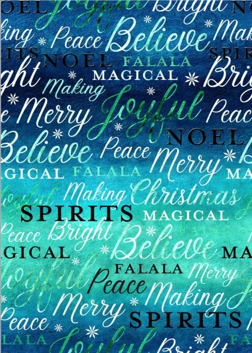 Oasis Fabrics Noel Believe Blue Writing