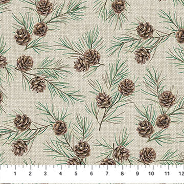 White Linen Christmas Beige Pine Cones by Northcott Studio